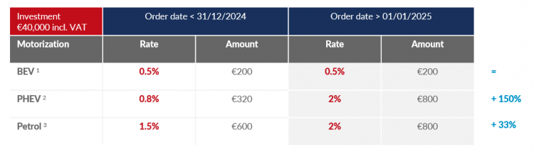It is still possible to anticipate this change because an order with the signing of a lease contract before 31 December 2024 will allow the current rate to be maintained. Renewing the lease in 2024 for the entire duration of the contract will be more advantageous, even if the vehicle is delivered in 2025.